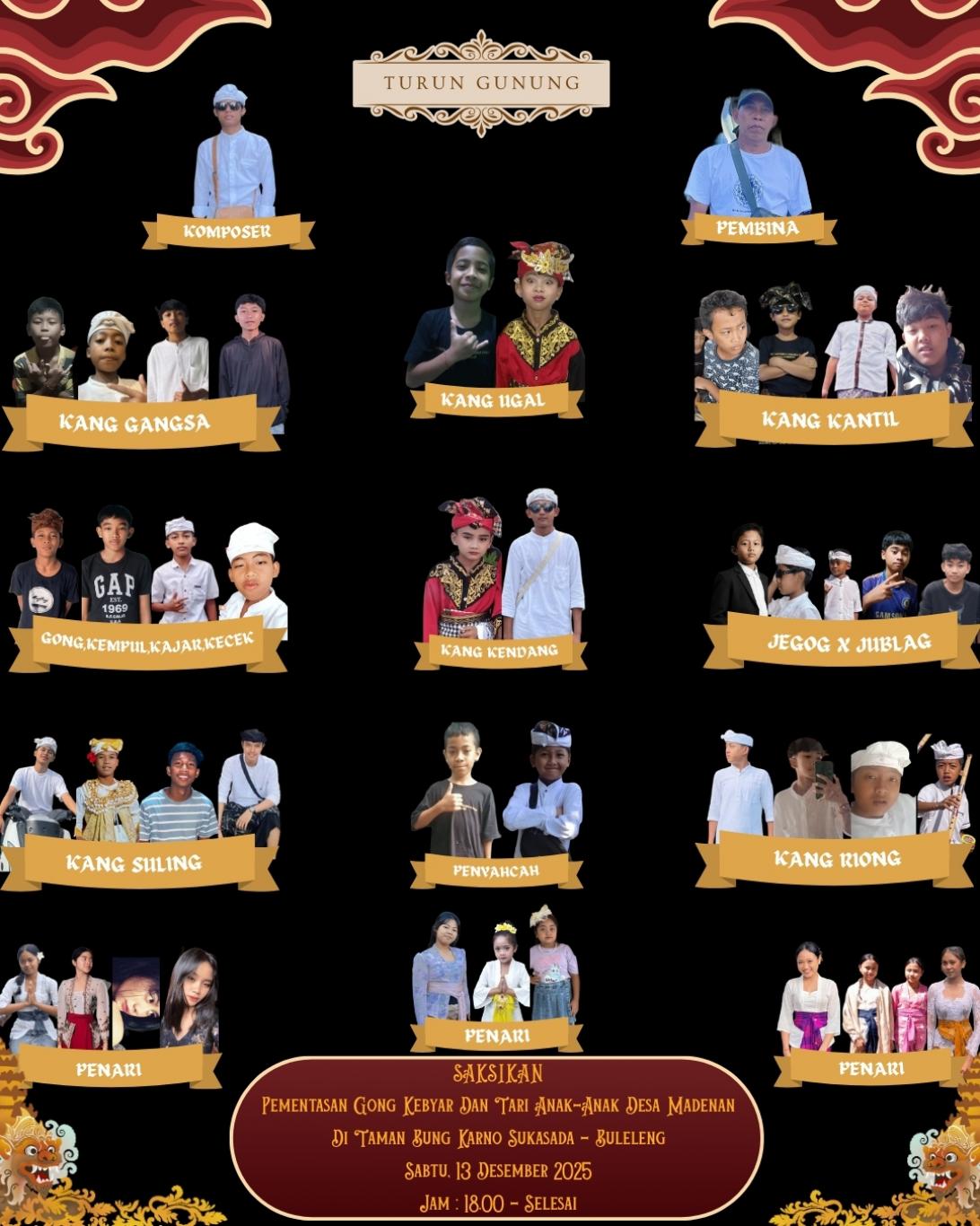 - Pementasan Gong Kebyar dan Tari Anak -Anak Sanggar Seni Sanggita Kencana Budaya Desa Madenan