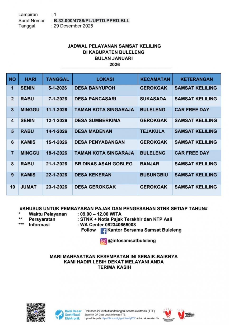 - Jadwal Layanan Samsat Keliling Bulan Januari 2026