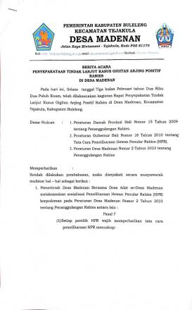 - Penyepakatan Tindak Lanjut Kasus Gigitan Anjing Positif Rabies Di Desa Madenan